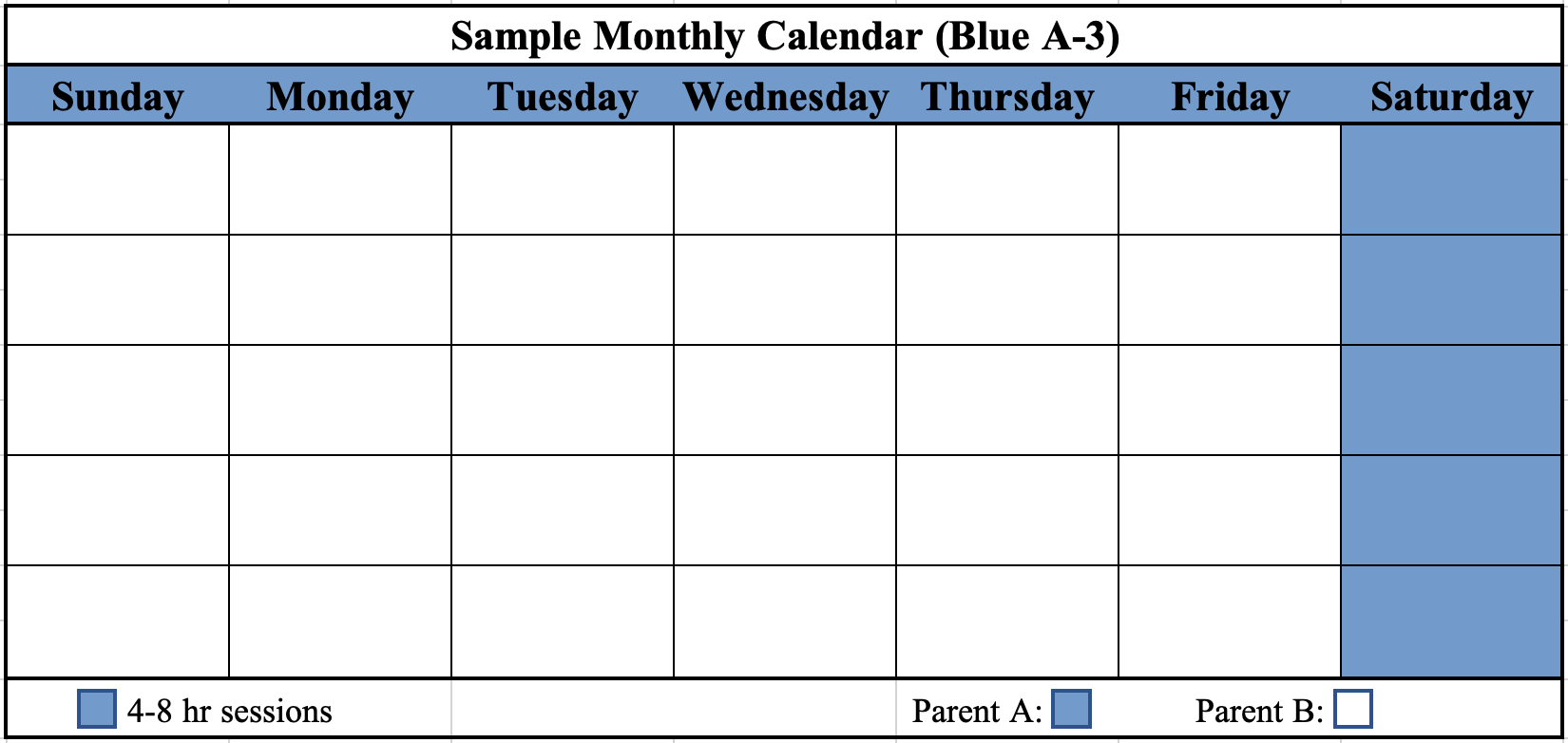 NOTE: The sample calendar and description include suggested days and times, but these days and times and any bracketed information can be adjusted to fit an individual family’s needs. See Customizing Your General Time-Sharing Schedule for more information.