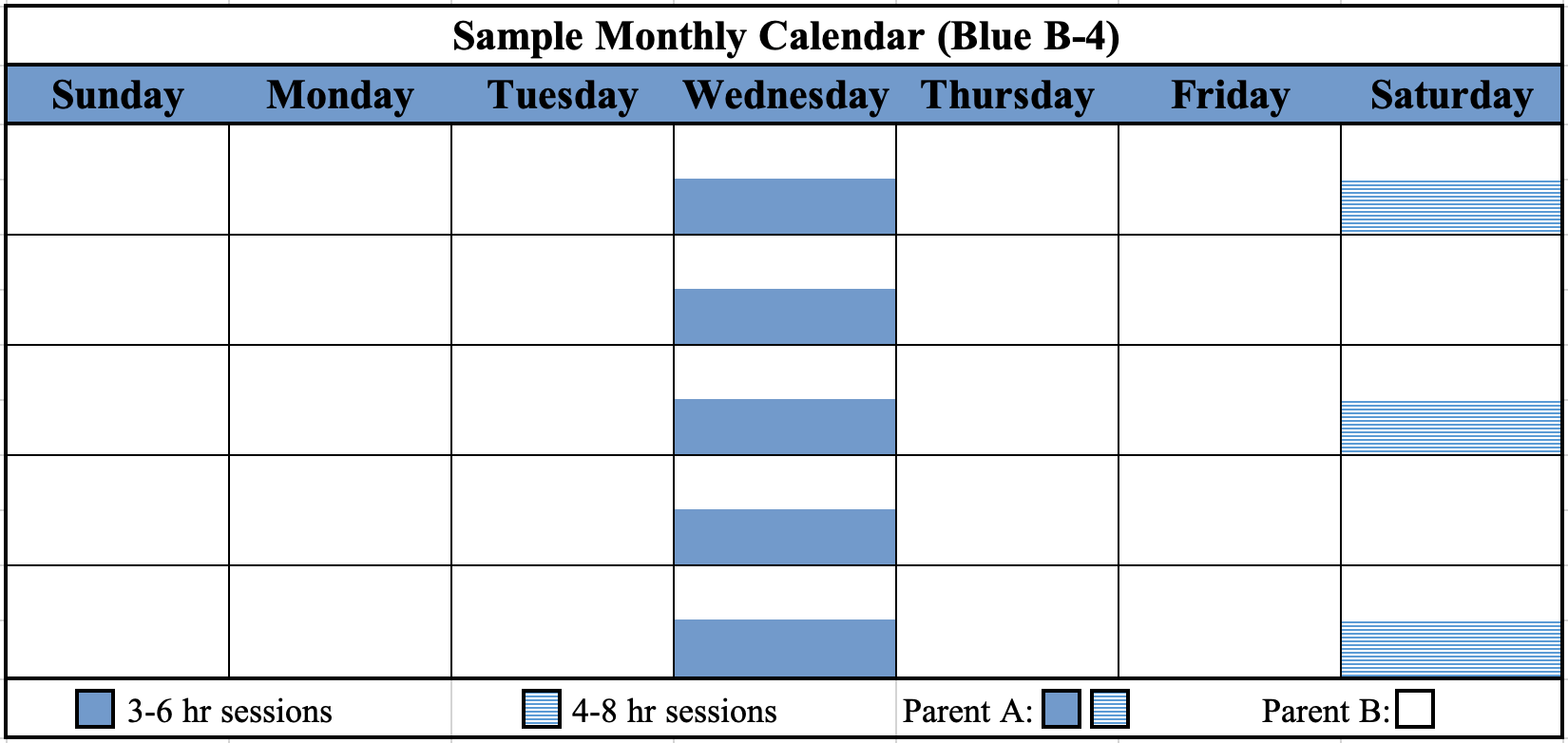 NOTE: The sample calendar and description include suggested days and times, but these days and times and any bracketed information can be adjusted to fit an individual family’s needs. See Customizing Your General Time-Sharing Schedule for more information.