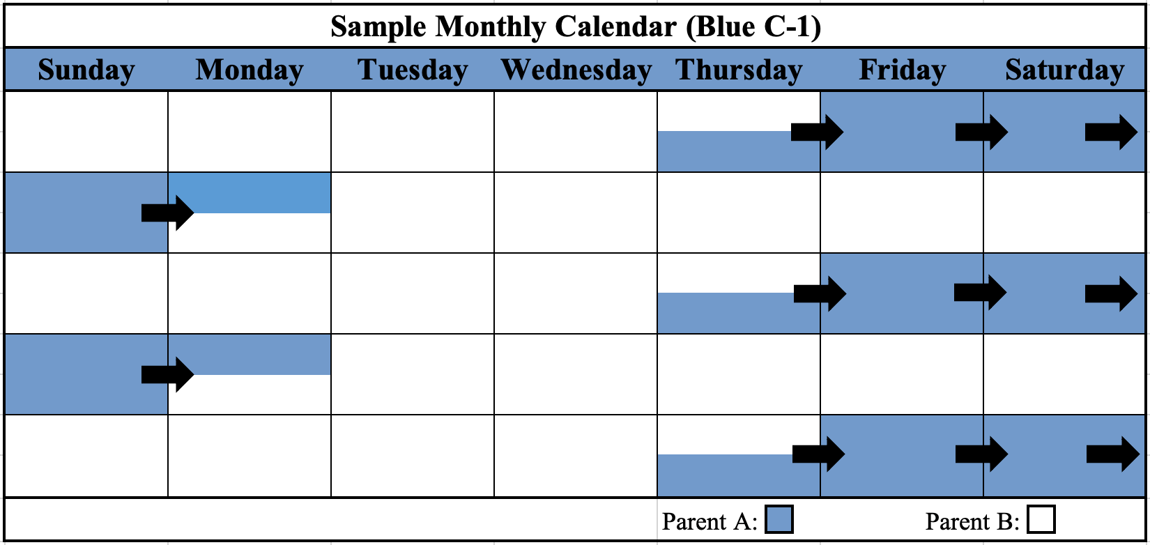 NOTE: The sample calendar and description include suggested days and times, but these days and times and any bracketed information can be adjusted to fit an individual family’s needs. See Customizing Your General Time-Sharing Schedule for more information.