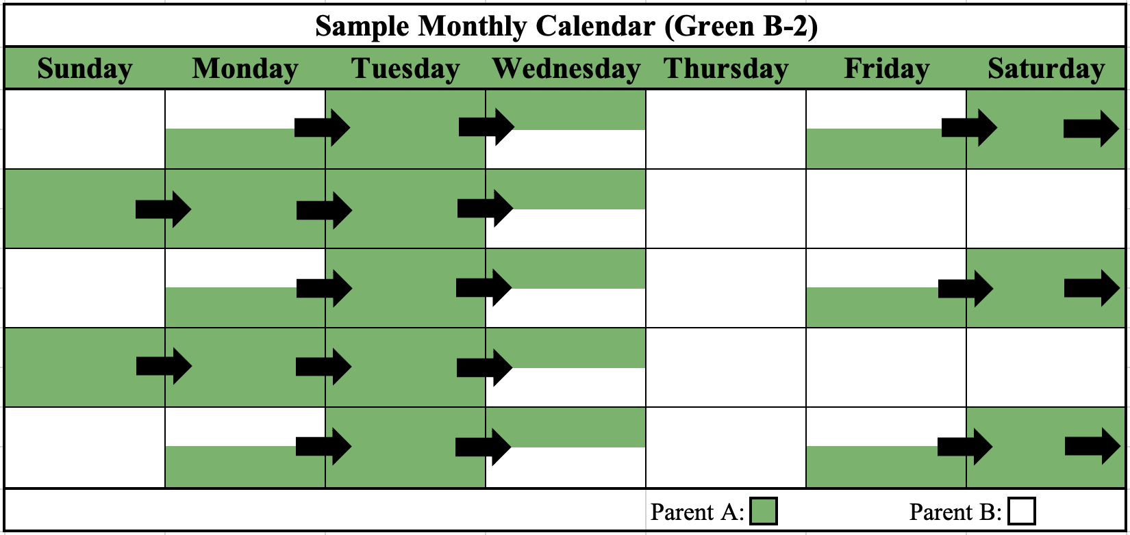 Click here to download the Green General Time-Sharing Schedule B-2 Calendar.